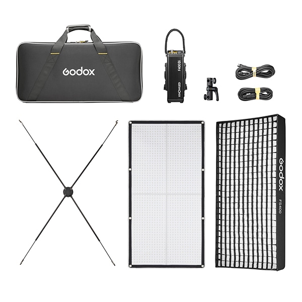 発光部が独自の折りたたみ可能なデザインとなっており、コンパクトに収納できるだけでなく、1つ1つのLEDを保護する役割も担います。付属のコントロールボックスに加えてDMX(RDMプロトコルをサポート)、2.4GHzワイヤレス制御、「GodoxLightAPP」を用いたBluetooth制御に対応。