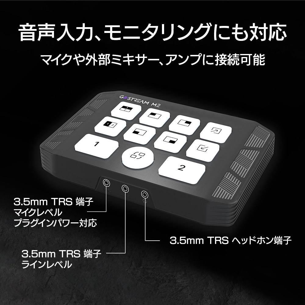 ポータブルなデザインと直感的な操作性、低遅延での配信を可能にする、ストリーマーやコンテンツクリエイター、企業配信の現場スタッフにとって理想的なデバイスです。本体はUSBバスパワーで動作します。