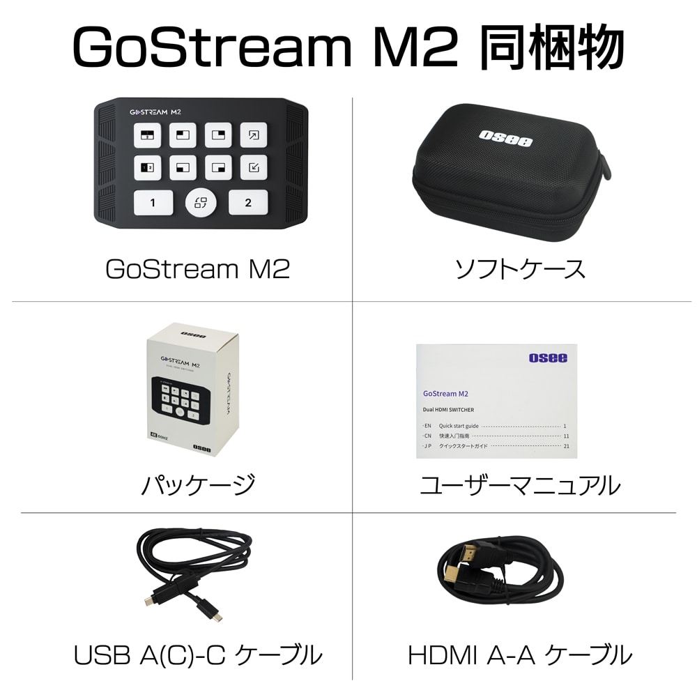 「ゴーストリーム M2」は、コンパクトなHDMI 2入力スイッチャーです。HDMI出力に対応したコンピュータやカメラからの映像を取り込み、配信やライブストリーミング、ゲーム配信などを簡単に行えます。