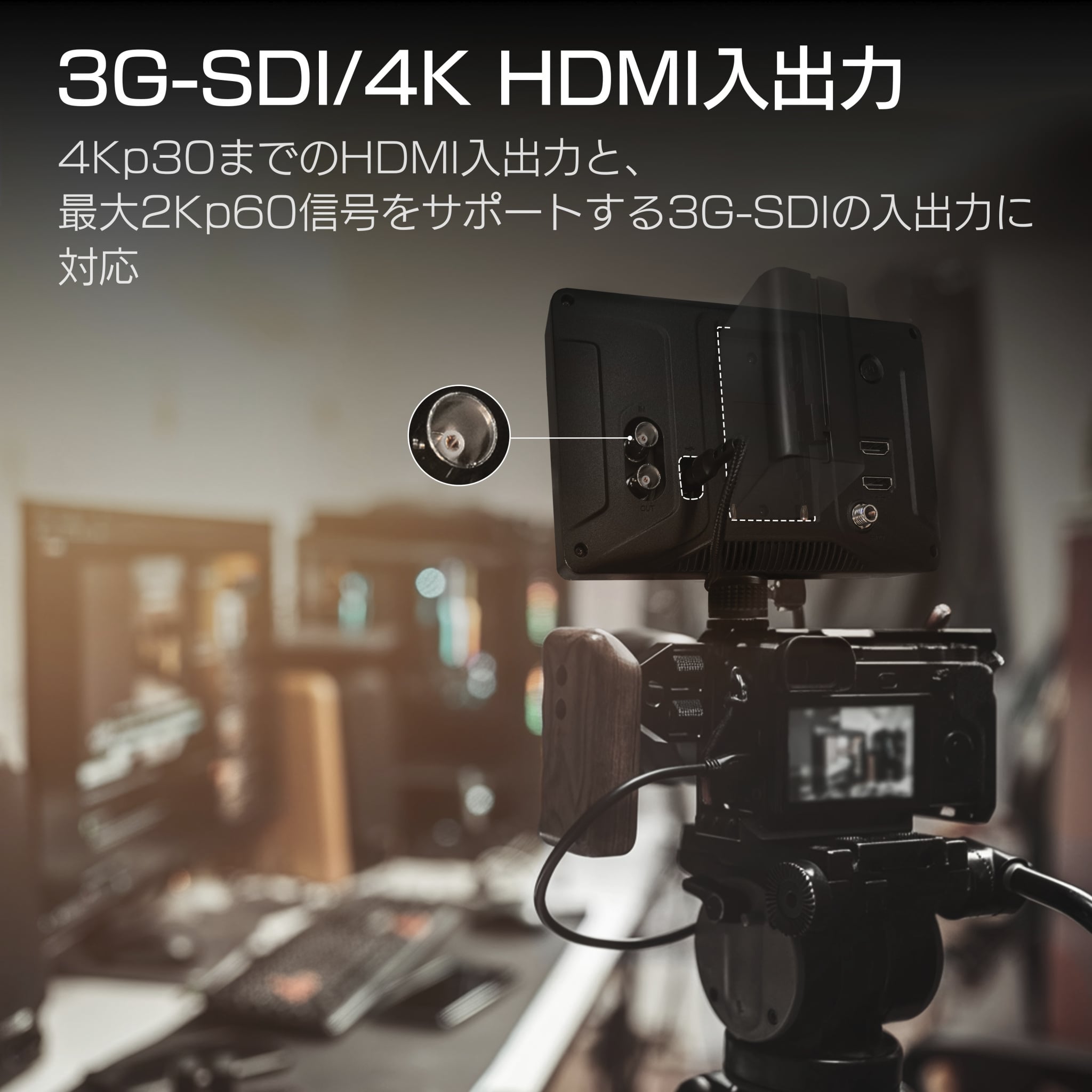 「G7 プロ」は、高画質な7インチオンカメラモニターです。3000nitsの超高輝度、3G-SDI/4K HDMIの入出力、カメラコントロール(対応機種に限る)、多彩な電源入出力など、多くの機能を盛り込んでいます。