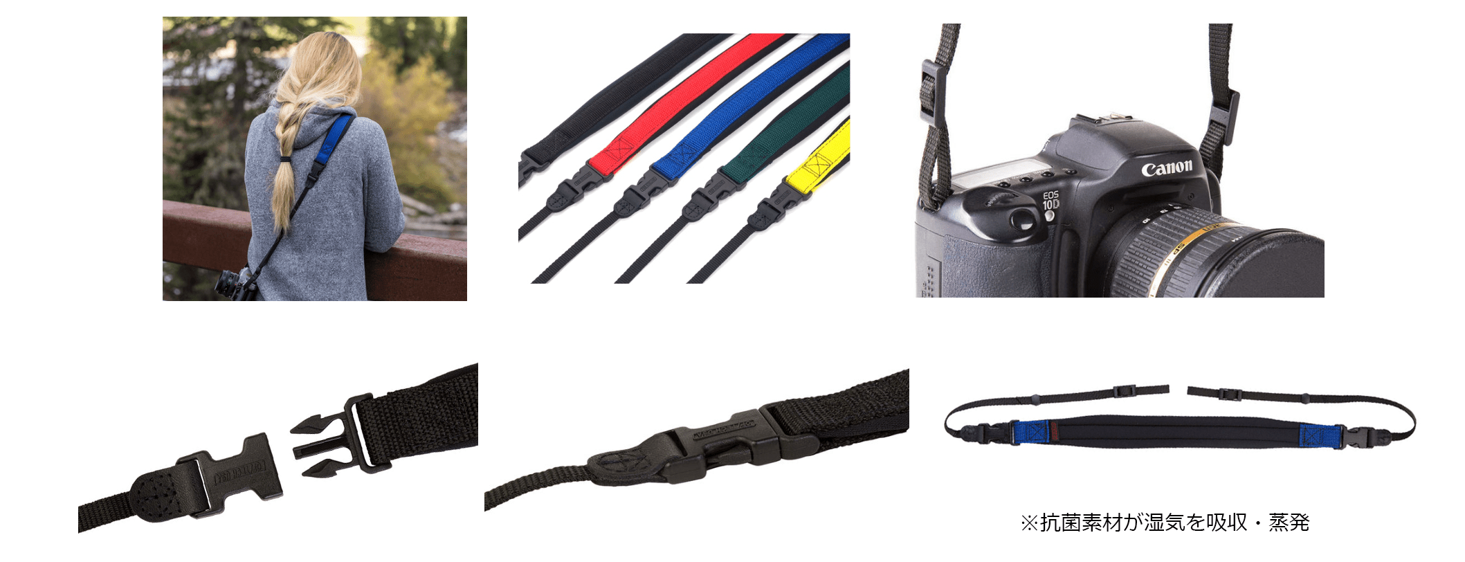 envy(羨ましい)の名を冠するこのストラップはユーザーにとって最高のストラップとして開発されました。独自のハイテク形状記憶素材が一人一人の首や肩の形状に合わせてフィットします。