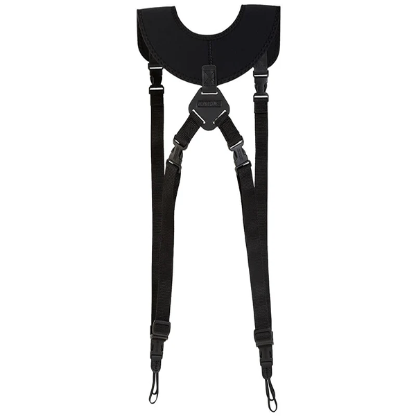 ダブルスリングは、発売後即定番となったユーティリティストラップスリングと同様に、2 台のカメラを保持できるスリングタイプのストラップです。首や肩の負担を分散する独特なネオプレーンの裁断で、快適にカメラを持ち運ぶことができます。システムコネクターユニループを採用。スリングタイプのストラップは速写性の求められる現場でその真価を発揮します。