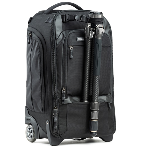 さらに両サイドのプリーツ加工のジッパーポケットには水筒などを収納でき、機材以外のアイテムも持ち運びしやすい設計です。バッグにはトライポッドストラップが付属し、前面または左右のサイドポケットに三脚を固定できます。