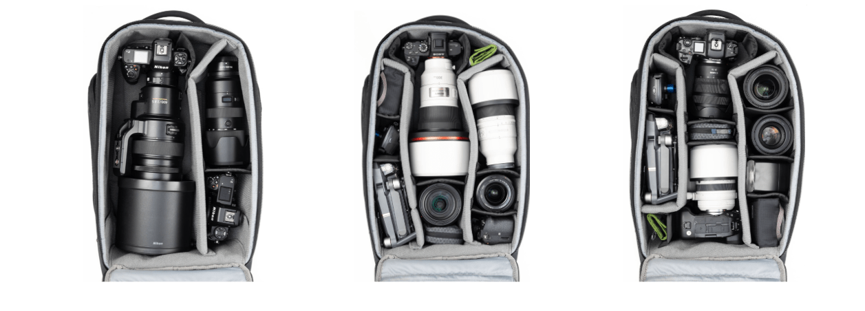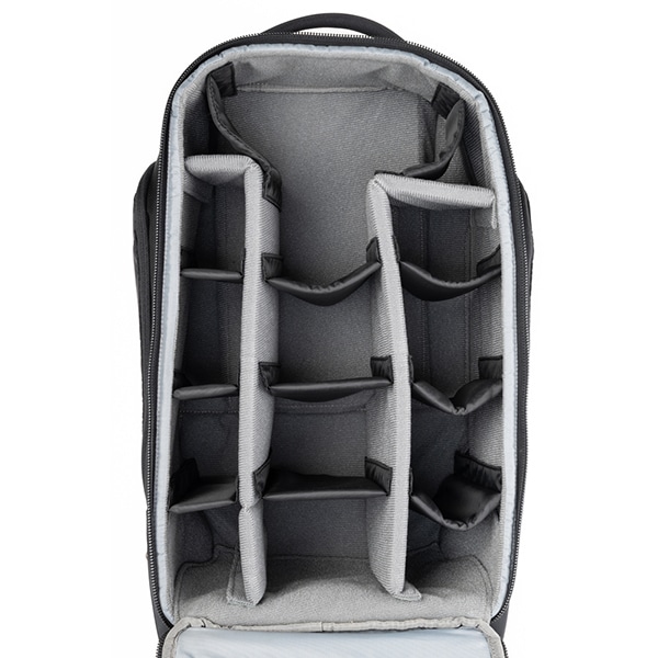 メインコンパートメントは深みがある大容量の機材収納スペースを備え、ディバイダーは取り外し、付け替えが可能です。