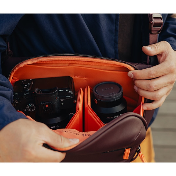 ミラーレスカメラやコンパクトカメラはもちろん、小型一眼レフを1台持ち運べるタウンユースに最適なエブリデイスリング 6L。