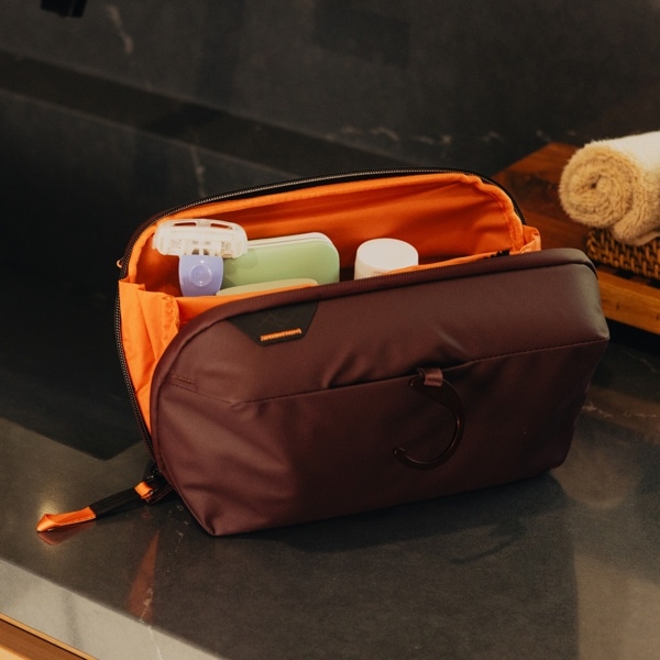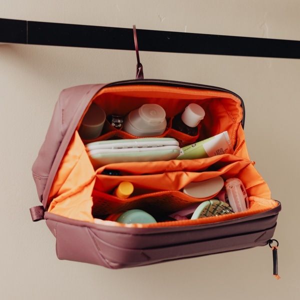 内側にジッパーポケットとマグネットで閉じる歯ブラシポケットを備え、細かなアイテムを整理して清潔に保つことができます。