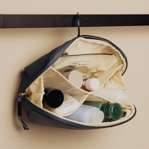 内側にジッパーポケットとマグネットで閉じる歯ブラシポケットを備え、細かなアイテムを整理して清潔に保つことができます。