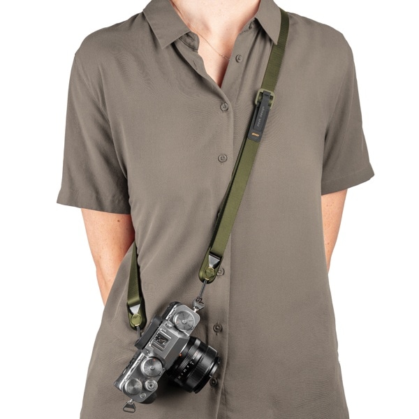 アルミニウムとハイパロン製のクイックアジャスターにより、指1本で長さ調節ができるスマートなストラップです。