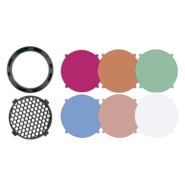 6種類のカラーフィルターと、ハニカムグリッドがセットになったアクセサリーキットです。