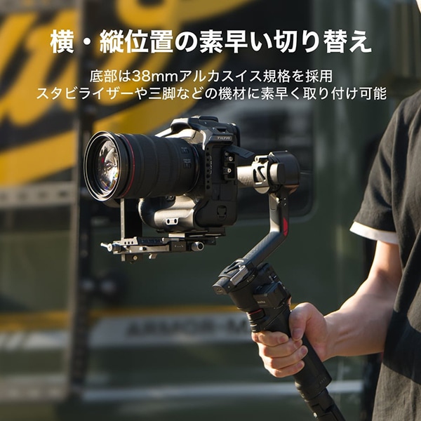 ・アルカ互換ボトムプレートで、各種三脚やDJIジンバルに簡単に取り付け可能
