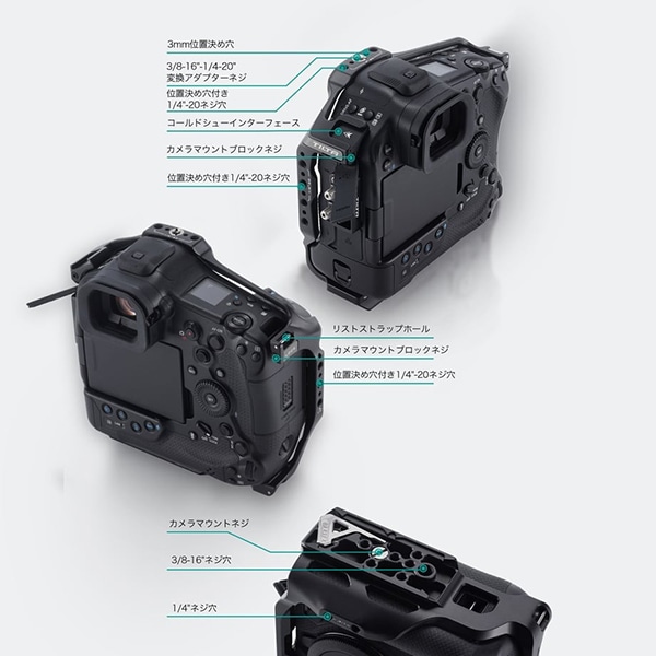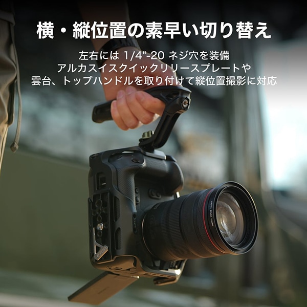・Canon R1カメラボディ専用設計・カメラケージ、トップハンドル、HDMIおよびUSB-Cケーブルクランプが付属