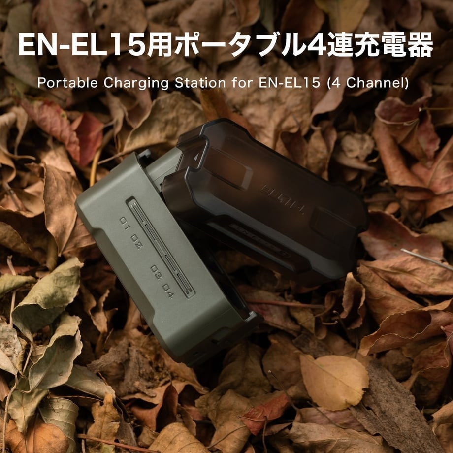 このコンパクトなEN-EL15用4連充電器は、Nikon純正およびほとんどのサードパーティ製EN-EL15バッテリーをサポートするように設計されており、4つのスロットで簡単に充電と保管ができます。軽量設計により重量はわずか172gなので、持ち運びも簡単です。