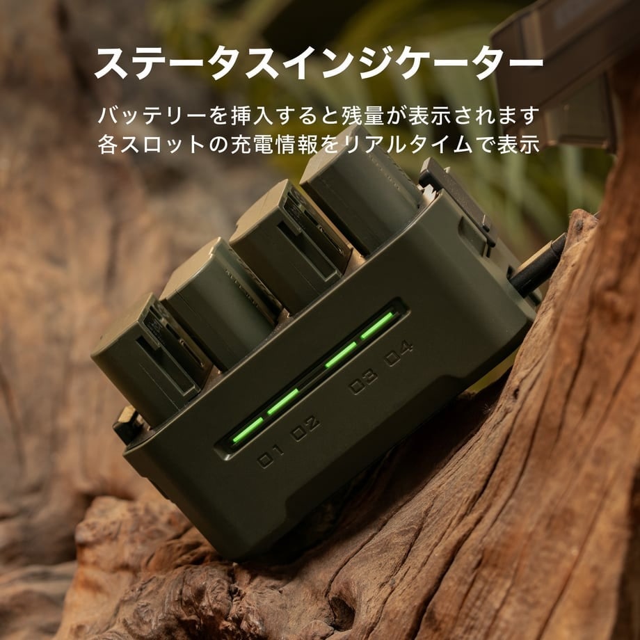 ・ステータスインジケーターで各スロットの充電情報をリアルタイムで表示