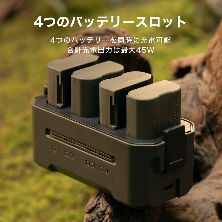 ・4つのバッテリーを同時に充電可能・USB-C高速充電 45Wの電力を供給し、4つのバッテリーを3時間で充電