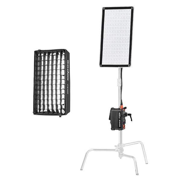 発光部が独自の折りたたみ可能なデザインとなっており、コンパクトに収納できるだけでなく、1つ1つのLEDを保護する役割も担います。付属のコントロールボックスに加えてDMX(RDMプロトコルをサポート)、2.4GHzワイヤレス制御、「GodoxLightAPP」を用いたBluetooth制御に対応。