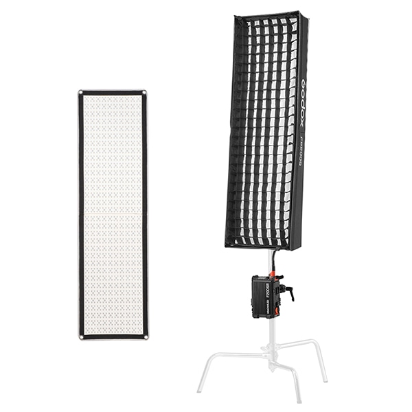 発光部が独自の折りたたみ可能なデザインとなっており、コンパクトに収納できるだけでなく、1つ1つのLEDを保護する役割も担います。付属のコントロールボックスに加えてDMX(RDMプロトコルをサポート)、2.4GHzワイヤレス制御、「GodoxLightAPP」を用いたBluetooth制御に対応。