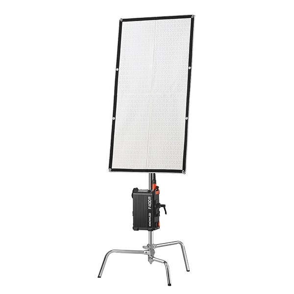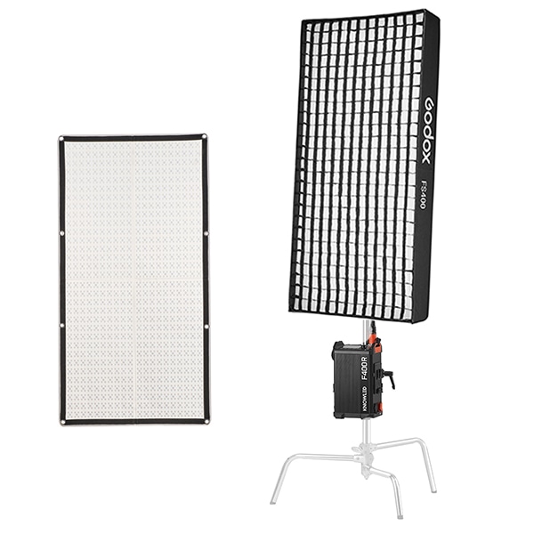 サイズ別にF100R、F200R、F200SR、F400R、F800Rをラインアップ(サイズ詳細は仕様欄参照)。各サイズともに、対応のグリッド付ソフトボックス(FS100/200/200S/400/800)が付属した「ソフトボックスキット」となっています。IP54の防塵防水性能を備えており、雨天の屋外撮影でもお使いいただけます。また、コントローラーも同様にIP54の性能となっています。Vマウントバッテリー駆動に対応しており、場所を選ぶことなくご使用いただけます。