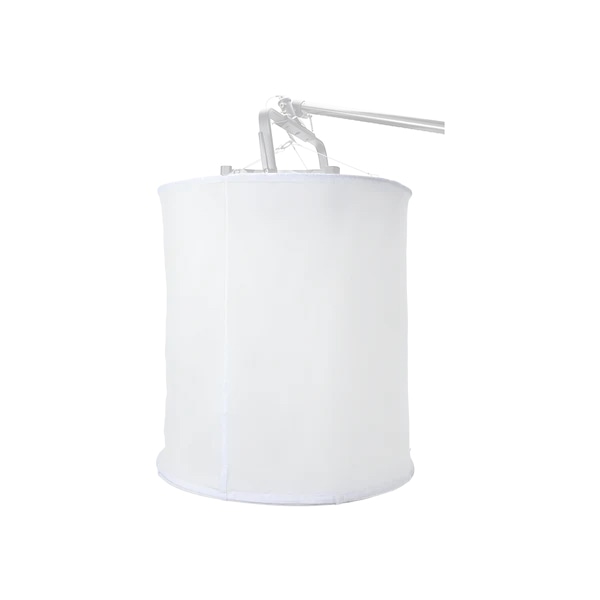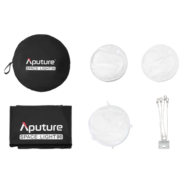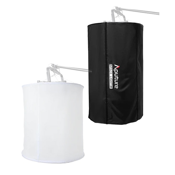 直径 90cm の円筒型ソフトライトアクセサリー「スペースライト 90」は、NOVA II 2x1 やボーエンズ マウント対応の Aputure 製ライトを、高出力のトップライトや全方向型の光源へ変換するために設 計されています。NOVA II 2x1 に直接取り付け可能なほか、付属のアダプタープレートを使用する ことで、ボーエンズマウントに対応した COB ライトに取り付けて使用できます。