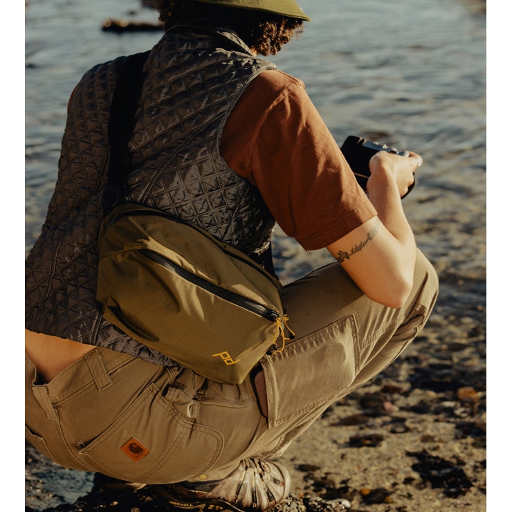 トレッキングなどのアウトドアアクティビティから日常使いまで、さまざまな場面で活躍します。別売りのカメラキューブ(Xスモールサイズ)と組み合わせて、アウトドア向けの軽量・コンパクトなカメラバッグとしても使用できます。