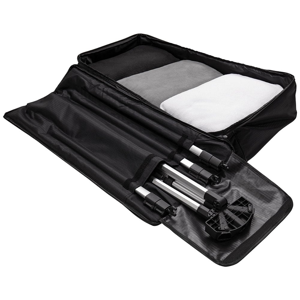 3パックキット:「リッチブラック」「ハイキーホワイト」「ニュートラルグレー」の3色のバックドロップ、スタンド、収納バッグで構成。