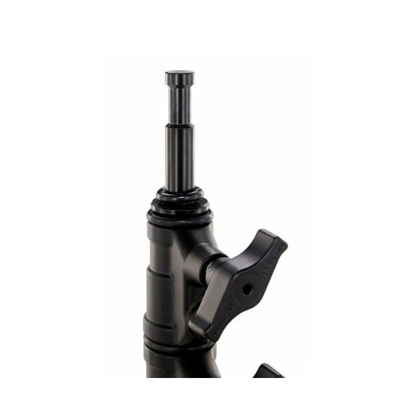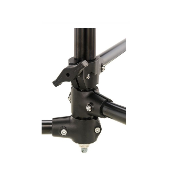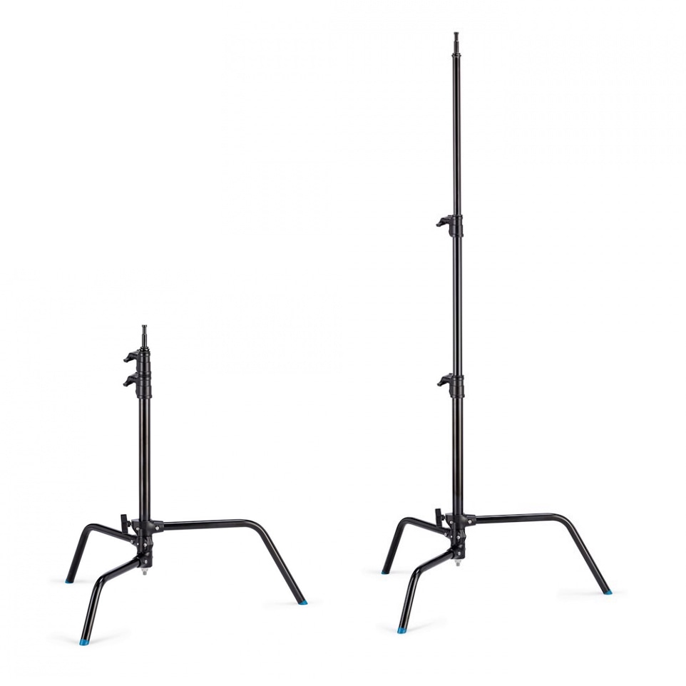 3段2ライザー構成の黒クロームメッキ仕上げスチール製タートルベーススタンドです。脚は平らに折りたたむことができ、収納に便利です。最大8kgの機材を保持することができ、1.75mの高さまで伸ばすことが可能です。不整地でも使いやすいよう、スライド脚を1本備えています。