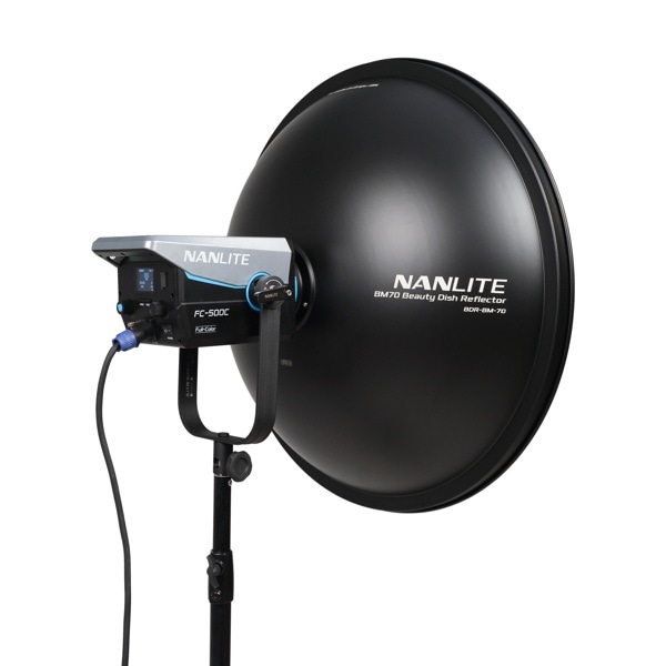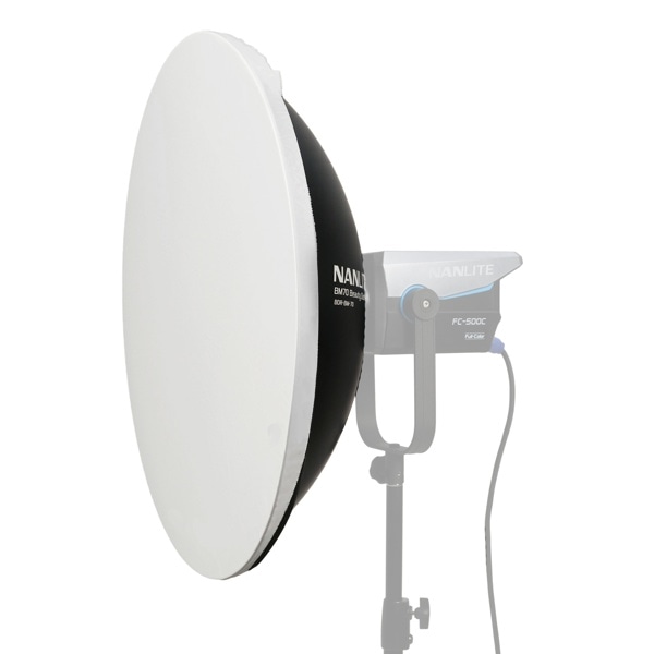 ① ビューティーディッシュリフレクターの内側にはオレンジピール加工が施されており、光を均一に反射します。光はディフレクタープレートに一度反射され、その後リフレクター内部に広がることで、集中しつつも柔らかく均一な光を生み出します。付属のディフューザーを装着することで、さらに光を柔らかくすることができます。また、丸型の開口部により、ポートレート撮影で魅力的なキャッチライトを作り出します。