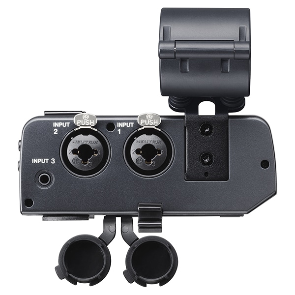 ・プラグインパワー対応の3.5mmステレオミニジャック (INPUT 3) のステレオ入力端子を装備、ミニプラグ端子のガンマイクやラベリアマイク、ワイヤレスマイクなどが接続可能