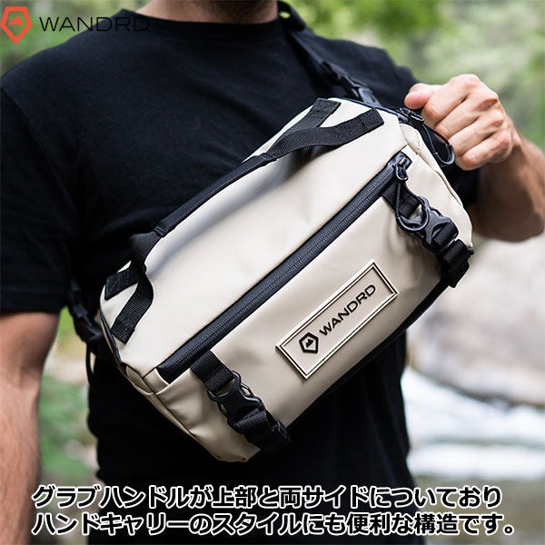 また、ショルダーストラップの長さを調節することで、スリングバッグだけではなくメッセンジャーバッグ、ウエストバッグとしても使用可能。グラブハンドルが上部と両サイドの3方向についており、ハンドキャリーのスタイルにも便利な構造です。