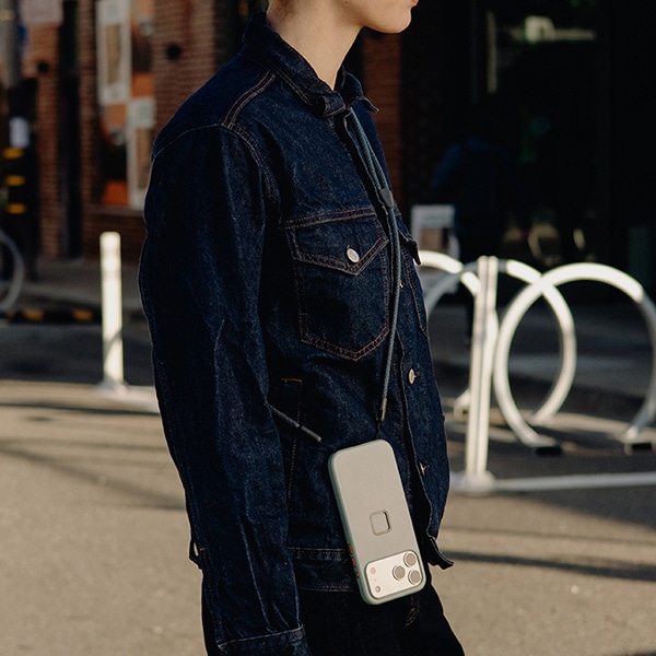 「モバイル クロスボディ ストラップ」は、すっきりとした印象を与える、シンプルな2点支持のショルダーストラップです。アクセサリーループを活用することで、1点支持への切り替えや、デバイスを外した際にストラップを体に沿わせてまとめておけます。
