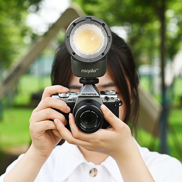 この1台で瞬間的に発光するフラッシュと、常時点灯が可能な定常光機能を兼ね備え、スチール撮影にも動画撮影にも屋内外を問わずさまざまなシーンで活躍します。