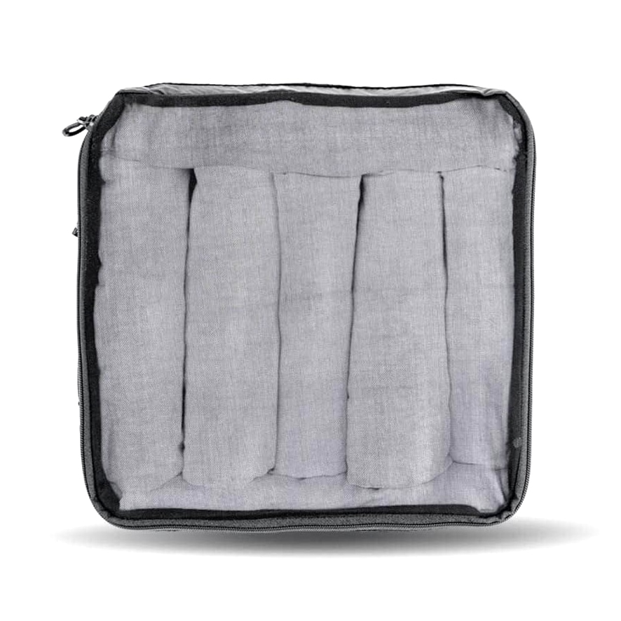 ラージ、ミディアム、スモールの3サイズ展開で、衣類や小物の収納に最適なポーチです。