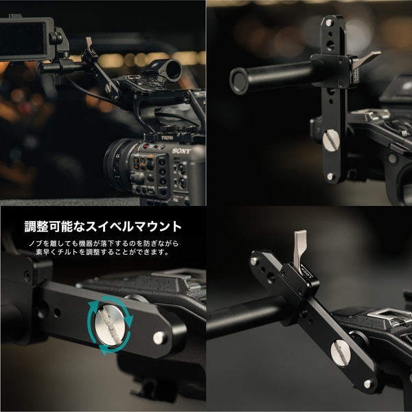 ブラケットの端には、FX6のLCDモニター用のマウントポイントがあり、快適な操作角度に簡単に回転させることができます。