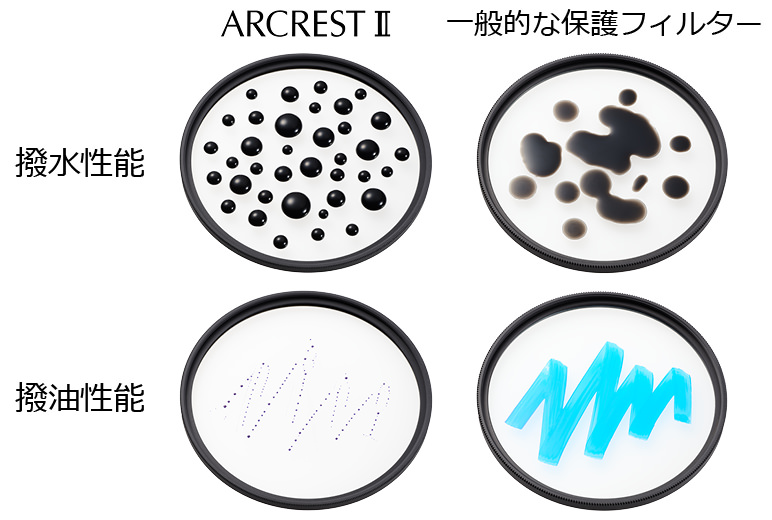 過酷な撮影環境でも汚れが付着しにくく、万一付着しても容易に拭き取れる、撥水・撥油コートを施しています。超高画素カメラでの撮影でも画質への影響がほとんどなく、さまざまな撮影シーンで安心してご使用いただけます。→詳細を見る