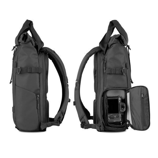 また、バックパネルとショルダーストラップを再設計し、通気性を向上させることで長時間の移動や撮影でも快適な背負い心地を提供します。