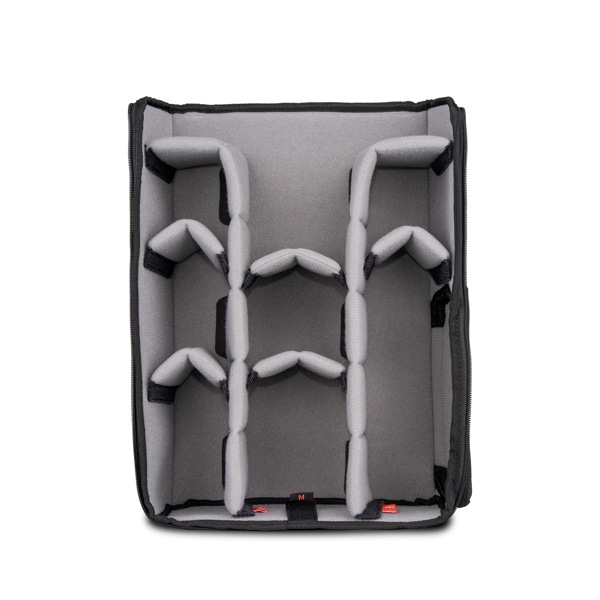 内側のカラーが明るいグレーになり、機材の視認性が向上しました。ディバイダーは取り外しでき、機材に合わせて柔軟に調節可能です。