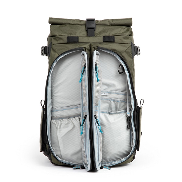 ロールトップ内部は拡張前は約12.7cmの深さがあり、フィルターなどが入るメッシュポケットが4つ配置されています。