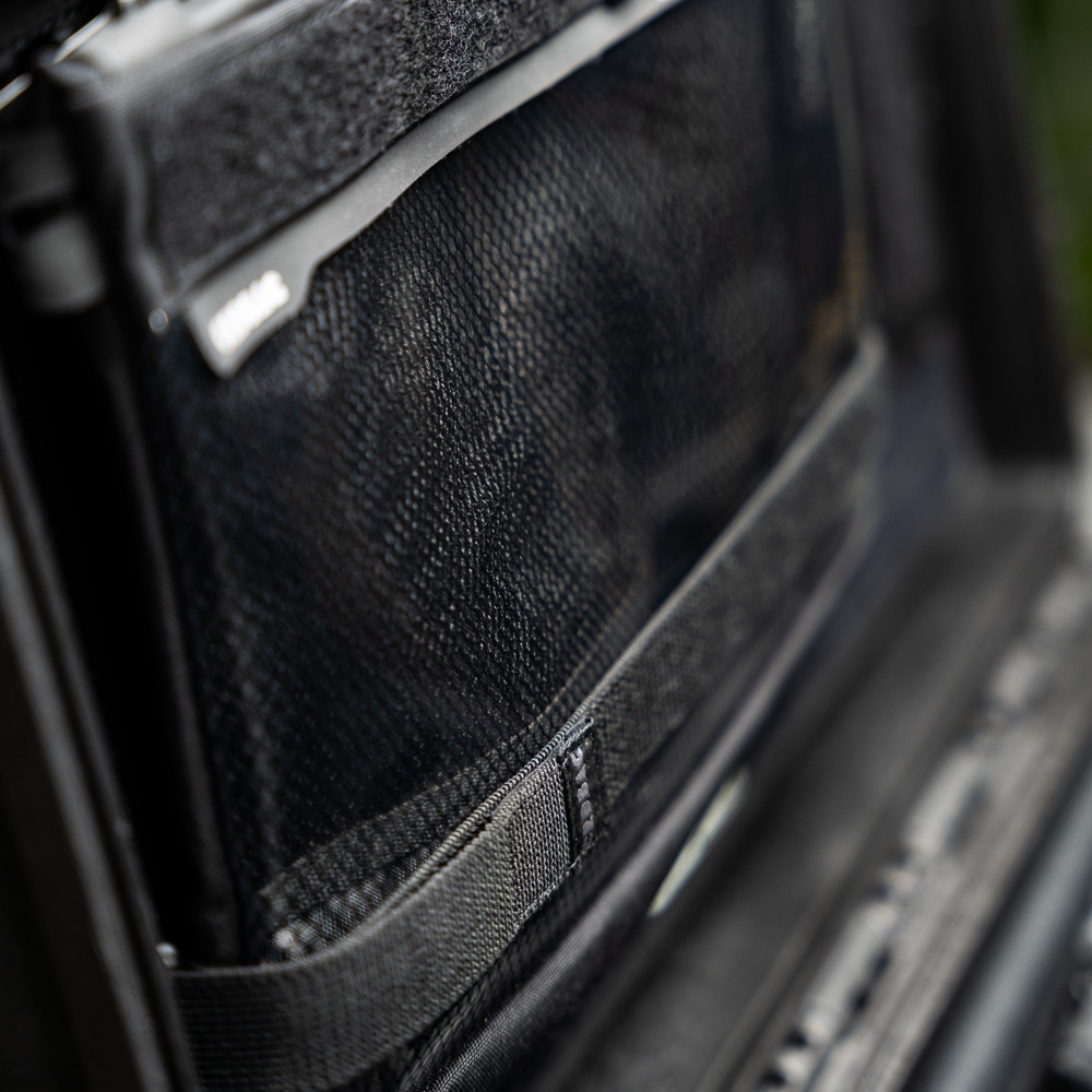 両端をモールパネルに取り付け、コードポーチを挟み込み、ベルクロでしっかりと固定できます。