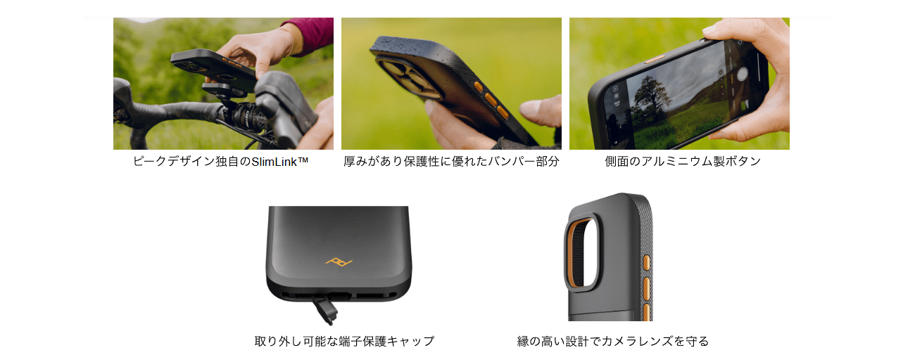 ケース背面にはピークデザイン独自のSlimLink™を備え、スマートフォンをさらに便利に活用できる各種アクセサリーを取り付けられます。