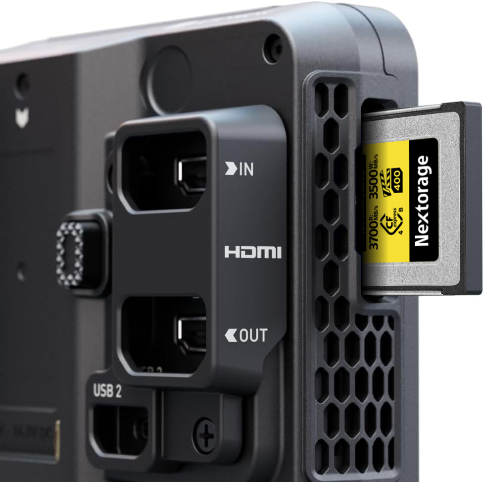 Ninja RAWは、高速なCFexpress Type Bカード(別売)に対応し、パフォーマンスをさらに向上させました。この最先端のメディアフォーマットは、より高速な読み書き、高解像度、そして高い信頼性を実現し、ProRes RAW 6K30pに対応するような高度なワークフローにも最適です。