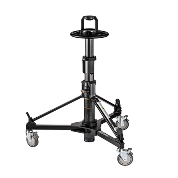 最大30kg(ヘッド含む)まで搭載可能で、中継やスタジオでの使用に適した小型ペデスタルです。同梱の専用空気入れにより、搭載するカメラやアクセサリーの重量に応じて空気圧を調整し、簡単にセッティングができます。また、ダブルベアリングシステムを採用し、上下の素早い動きに対してガタツキを抑え、スムーズな動きを実現します。
