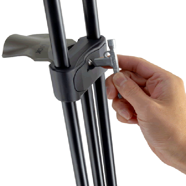 上段にあるロック機構1つで高さ調整ができます。フリップ式ロックの形状は人間工学の観点から設計されており、下からでも横からでも指を掛けやすくなっています。カメラマンの負担を減らし、簡単でスピーディーな高さ調整を可能にします。