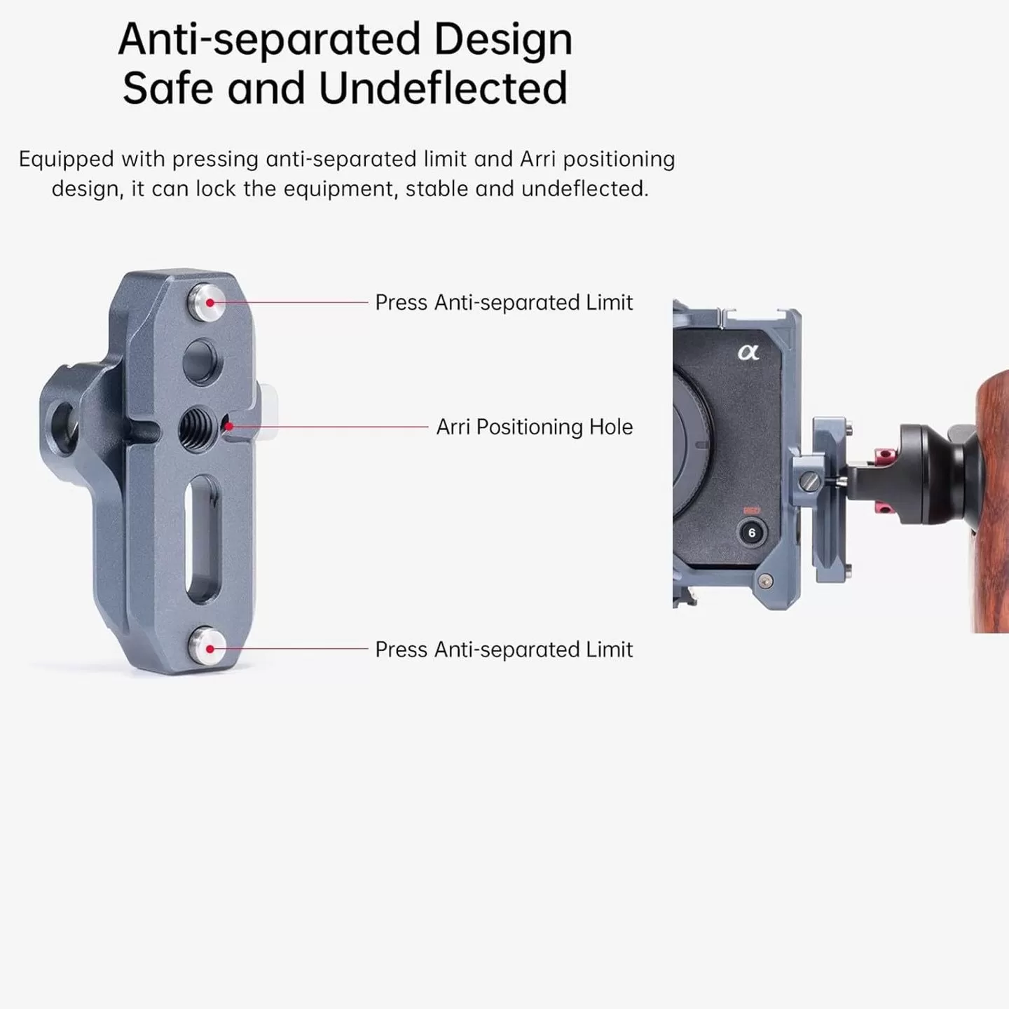 18?29mmの穴間隔に適応し、幅広いアクセサリーへ装着可能。標準1/4インチネジでカメラケージや各種マウントに取り付けでき、F22クイックリリースベースおよびマウントの拡張に対応します。