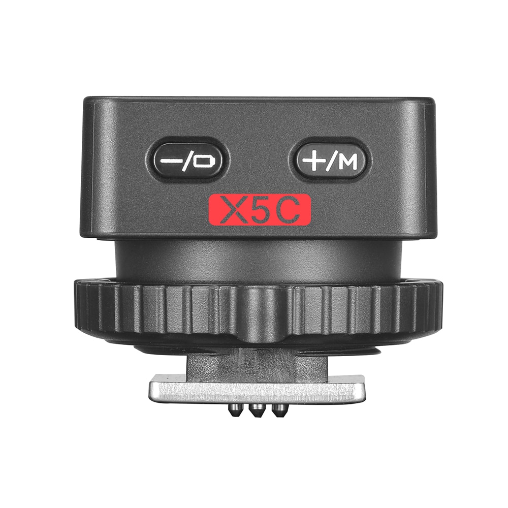 X5 は、iT32 のためのホットシューを兼ねた、TTL 対応ワイヤレストリガー(送信機)です。キヤノン、ニコン、ソニー、富士フイルム、OM/パナソニックの各メーカーTTL に対応しており、1 台の iT32 を複数メーカーのカメラで使用可能です。GODOX の 2.4GHz ワイヤレス「X」システムにより、iT32 および X5 は通常のクリップオンフラッシュとしてはもちろん、マスターユニットとして複数の X システム内の GODOX フラッシュを同時にコントロール可能にします。