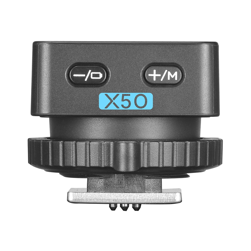 X5 は、iT32 のためのホットシューを兼ねた、TTL 対応ワイヤレストリガー(送信機)です。キヤノン、ニコン、ソニー、富士フイルム、OM/パナソニックの各メーカーTTL に対応しており、1 台の iT32 を複数メーカーのカメラで使用可能です。GODOX の 2.4GHz ワイヤレス「X」システムにより、iT32 および X5 は通常のクリップオンフラッシュとしてはもちろん、マスターユニットとして複数の X システム内の GODOX フラッシュを同時にコントロール可能にします。