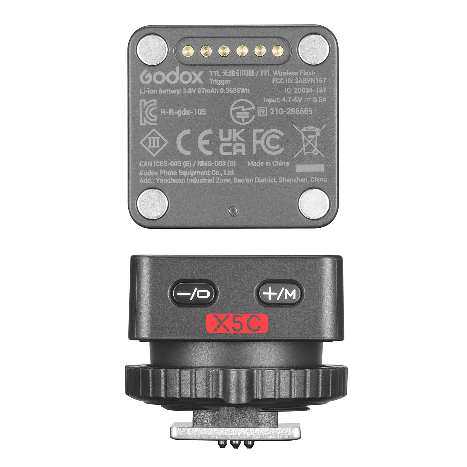 X5 は、iT32 のためのホットシューを兼ねた、TTL 対応ワイヤレストリガー(送信機)です。キヤノン、ニコン、ソニー、富士フイルム、OM/パナソニックの各メーカーTTL に対応しており、1 台の iT32 を複数メーカーのカメラで使用可能です。GODOX の 2.4GHz ワイヤレス「X」システムにより、iT32 および X5 は通常のクリップオンフラッシュとしてはもちろん、マスターユニットとして複数の X システム内の GODOX フラッシュを同時にコントロール可能にします。