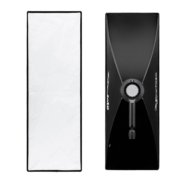 Clic ソフトボックス 30×90 cm は、長辺では長くエッジのスムーズなシャドーを持つやわらかい光を、短辺ではエッジの短いシャドーを持つ硬い光を演出するため、エッジライトまたはリムライトに最適です。曲線や輪郭を強調し、被写体を背景から効果的に浮き上がらせるために欠かせないライトシェーピングツールです。