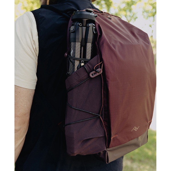 ピークデザインにより考案されたCord Hook™(コードフック)システムとCord Rails™(コードレール)を活用してさまざまなアクセサリーやポーチをバッグの外側に取り付けることにより、持ち運びできる荷物量を増やせます。