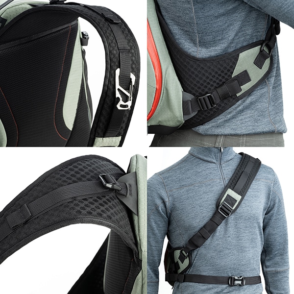 ショルダーストラップに高密度なEVAフォームを追加。機材重量による肩への負担を軽減し、一日中の携行でも快適さを維持します。また、ハーネスシステムを刷新し、激しい動きを伴うアクティビティや、小柄な体型の方にも隙間なくフィットする設計へと進化しました。
