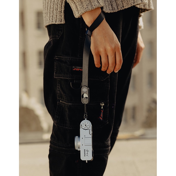 ループサイズを手首に合わせて調節すれば、カメラの落下防止に役立ち、大きなループのままでも使用できます。使わないときは畳んでポケットに入れられるので、移動中も邪魔になりません。