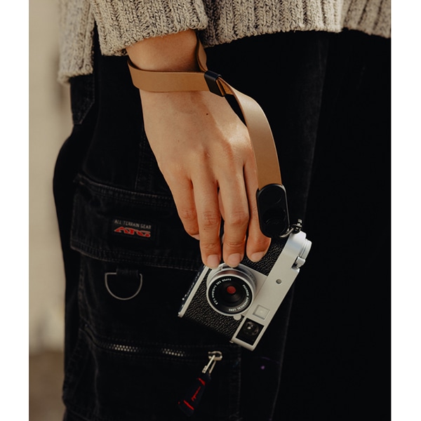 ストラップの裏側には独自のシーリング加工が施されています。レザーの端部分は、薄型のガラス強化ナイロン製アンカーハウジングにシームレスに接続されており、安全かつ簡単にカメラを着脱できます。
